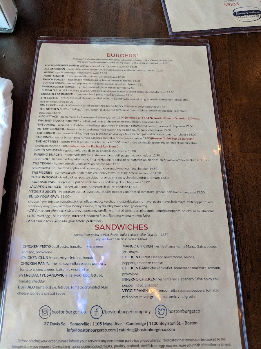 If you're in the mood for mouthwatering burgers and creative combinations, the Boston Burger Company - Davis Square Menu is your go-to spot. Situated in the heart of Somerville, MA, this burger haven is perfect for those craving a hearty, flavorful meal. The menu is packed with everything from classic options to unique, gourmet creations. Whether you're a fan of bold, spicy flavors or something a little more on the savory side, there's a burger for every taste. Along with the burgers, you'll find delicious sides, refreshing drinks, and an inviting atmosphere that makes it a great place for friends and family. Dive into a satisfying meal that will leave you coming back for more.